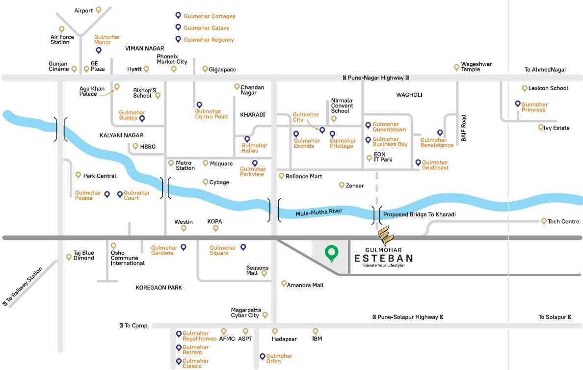 - Located close to Y junction connecting to Koregaon Park, Mundhwa, Hadapsar and Kharadi