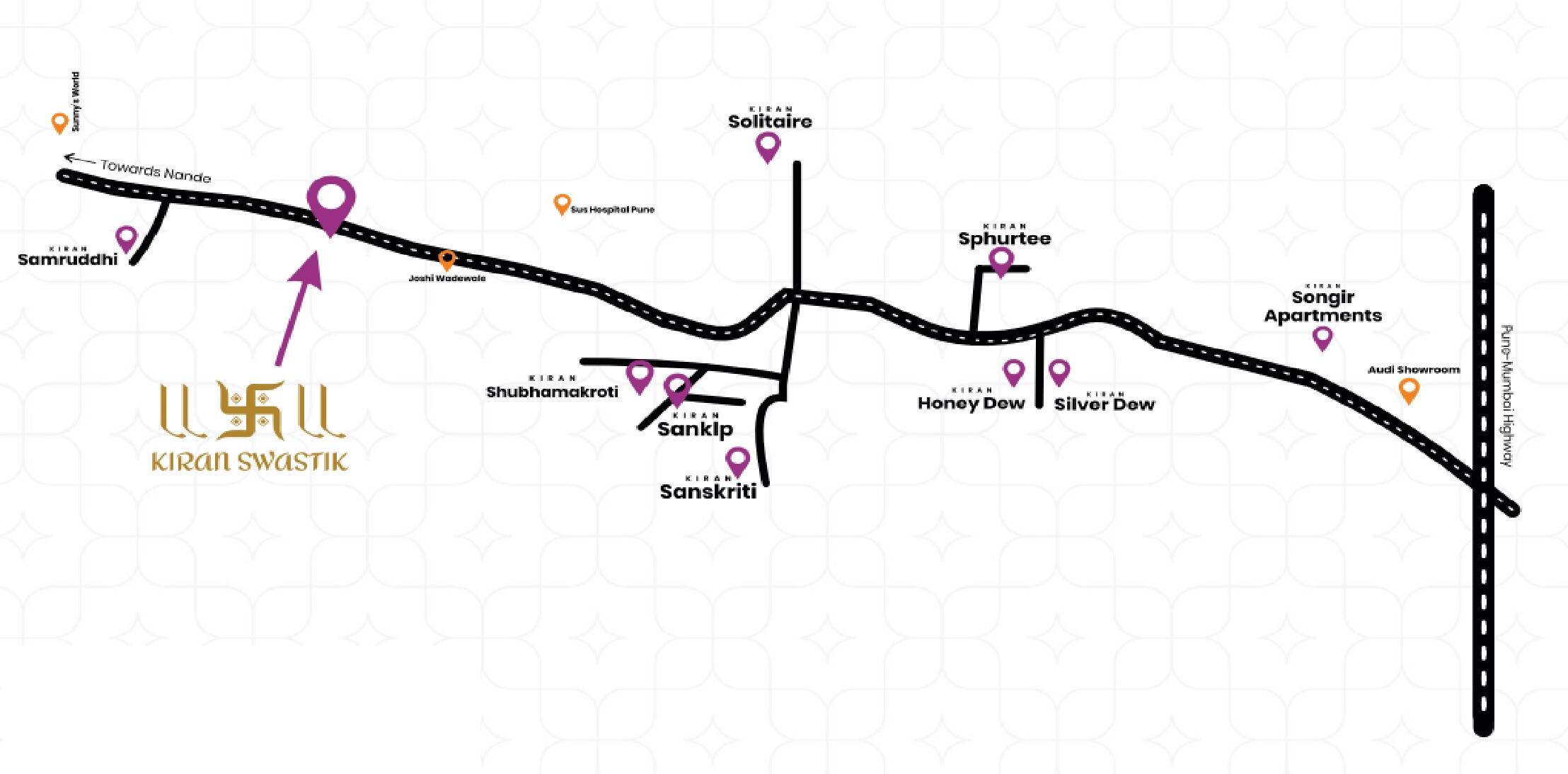 - Some popular transit points closest to Kiran Swastik are Wakad chowk metro station. Out of this, Wakad chowk metro station is the nearest from this location.