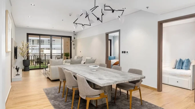 Residents enjoy private decks or balconies based on layout choice. Select 2 bedroom apartments feature terraces while 3 bedroom residences offer added convenience with maid’s rooms. This thoughtful design ensures residents experience maximum comfort and a personalized living space.